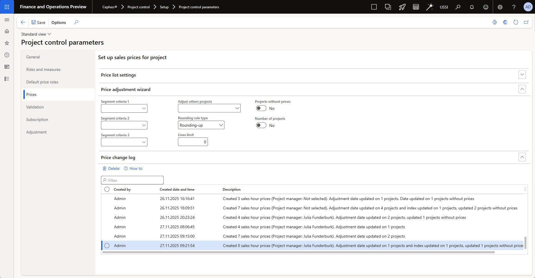 Here you can specify criteria for project group, rounding ++. Also all changes are logged