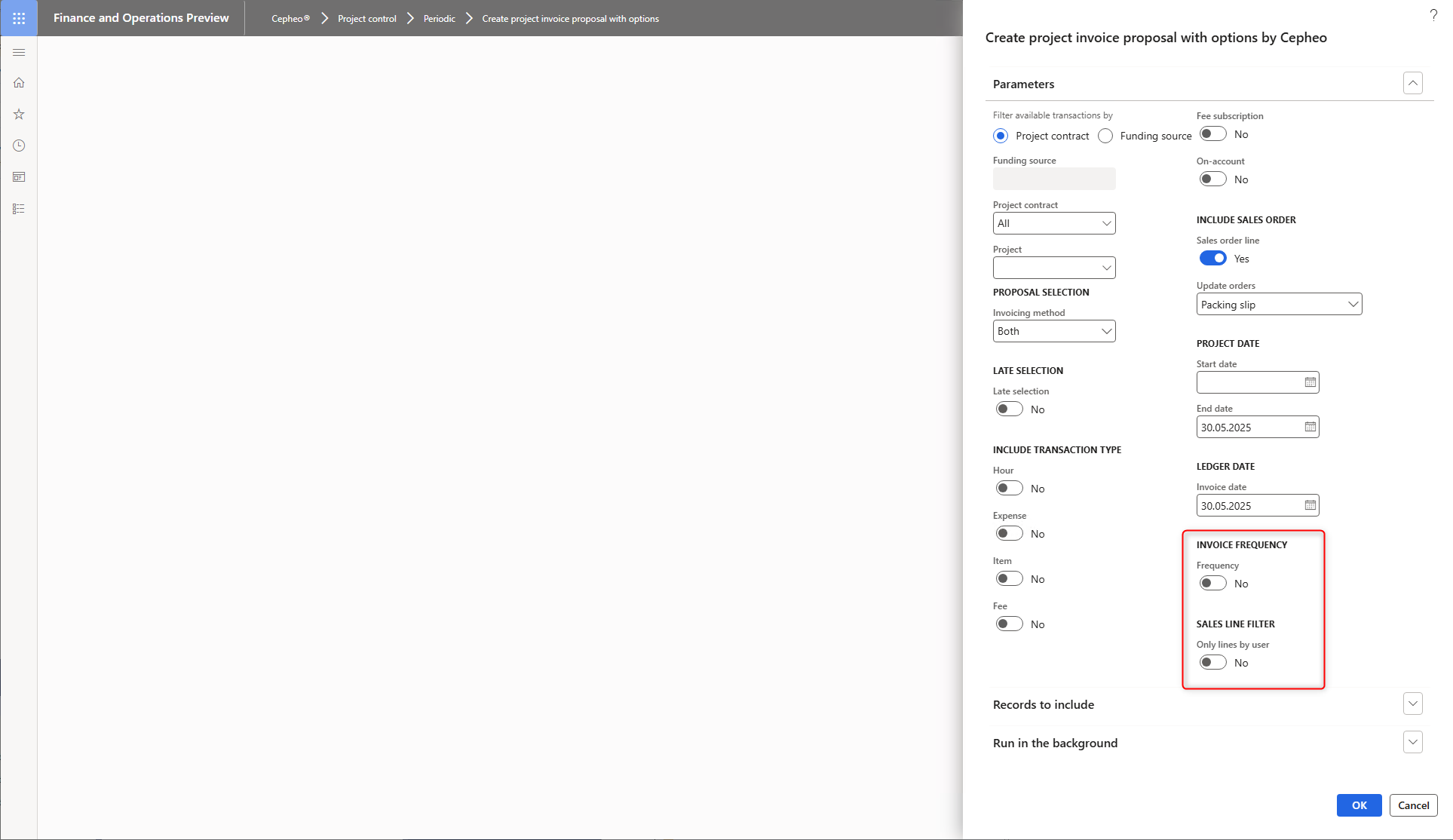 - Invoice frequency, if this is activated there is an additional requirement for which contracts that will be included in the creation of proposal. Only those contracts with next invoice date equal to today or greather will be included.