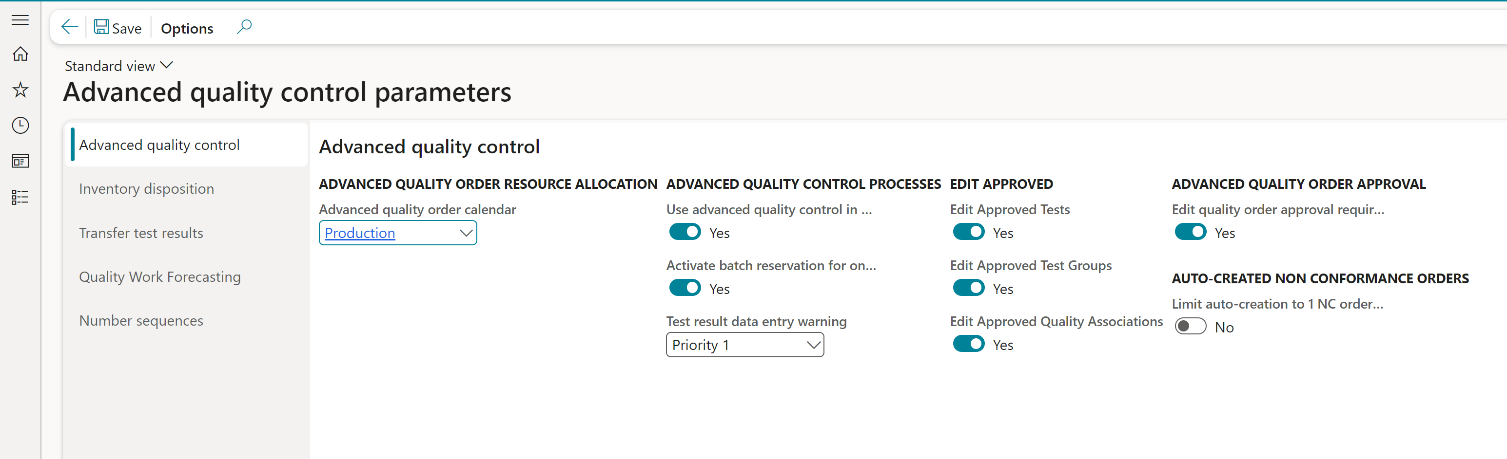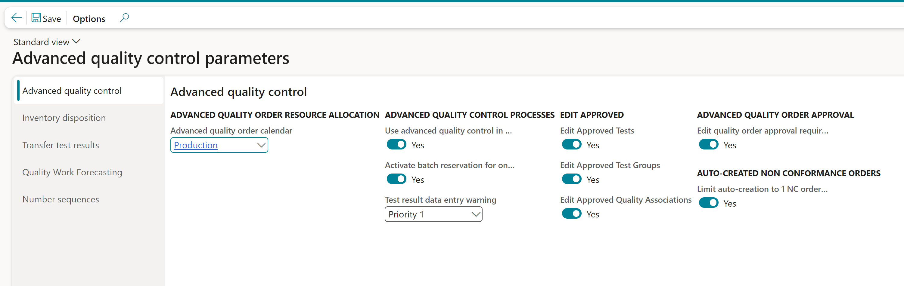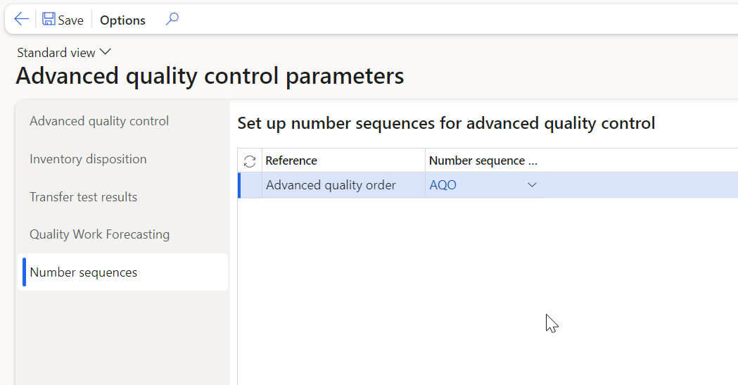 Set up number sequences for advanced quality control | Setup the number sequence used when creating Advanced quality orders | YES |
