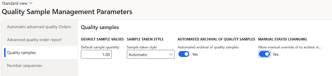Quality Sample Management Parameters