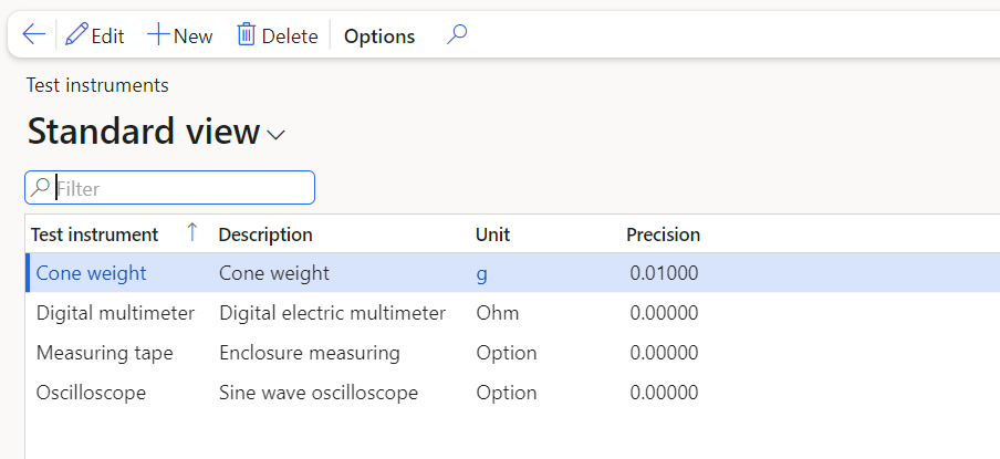 Path: (Quality\Setup\Quality control) When setting up the quality control functions, it is possible to create test instruments that can be linked to tests. It is optional/not mandatory information.