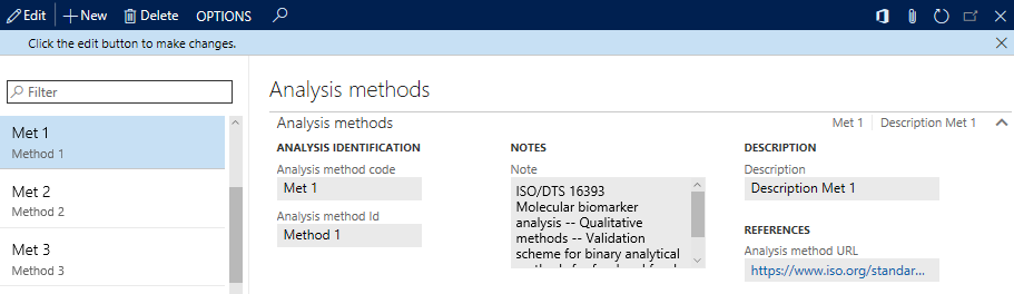 Path: (Quality\Setup\Quality control) Analysis methods provide a place for gathering information such as experimental protocols that can be attached using standard document management or a link to an online description.