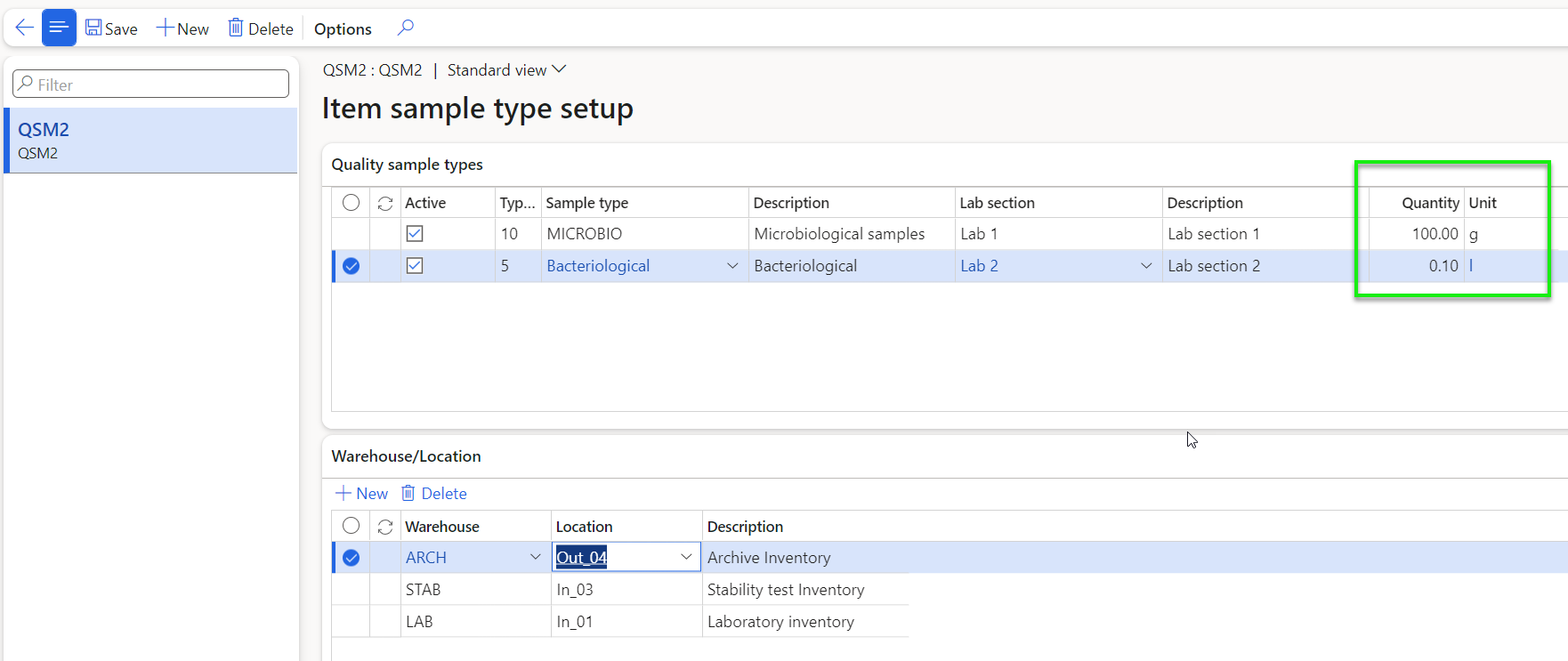Usage in Quality and Sample Management (QSM) Module: