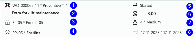 In this section, general information is about the work order job is displayed. Also the work order lifecycle state and the job schedule status is displayed (in blue text).