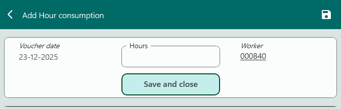 Hour consumption for the job can be added for the current worker. It's possible to specify negative numbers in order to make corrections to previous registrations.
