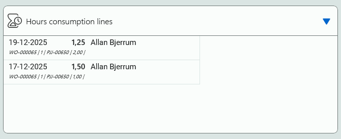 - Hour consumption lines: Overview over registered hours at the job