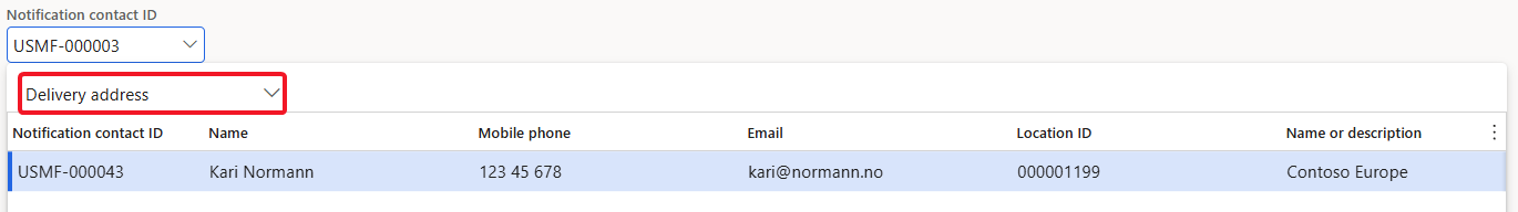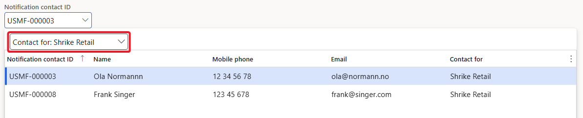 The lookup form has a filter where you can select which Notification contacts to be shown.