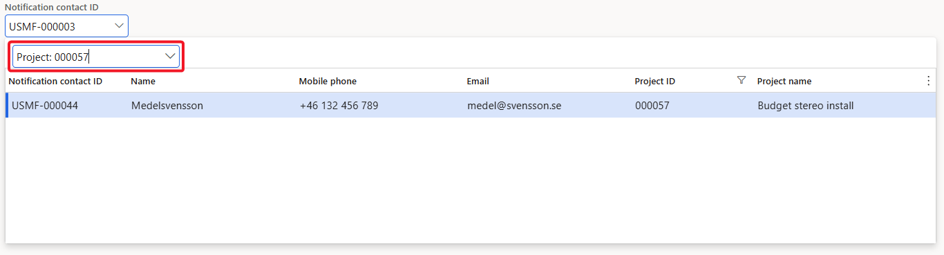 It is possible to set a default Notification contact on a project. This Notification contact will be copied to the Sales Order or Item requirements on create or when project is changed.