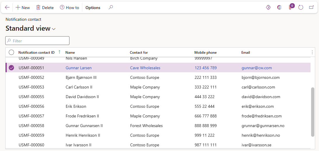 Easy maintenance of Notification contacts has been implemented in many forms.