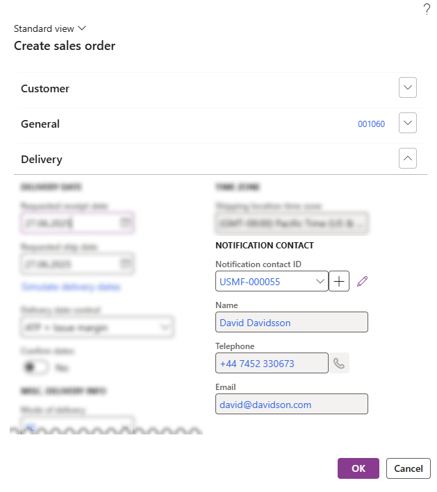 It is possible to edit the Notification contact when creating a Sales order. The default Notification contact is copied from the selected Delivery address, Project or Customer.