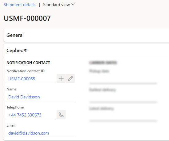 Navigate to Cepheo® > Shipment booking > Notification contacts