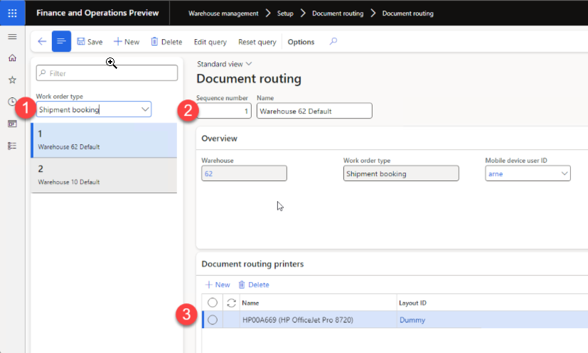 Navigate to Warehouse management > Setup > Document routing > Document routing layouts