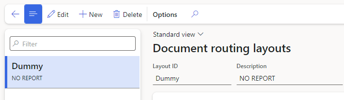 - Create a new record in the Document routing printers section. Use the empty Document routing layout you created in the previous step and link it to your desired printer.