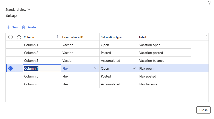 Label | Enter a text that is displayed as label for the column. A combination of Name of Hour balance and Calculation type will be used if no label is set |
