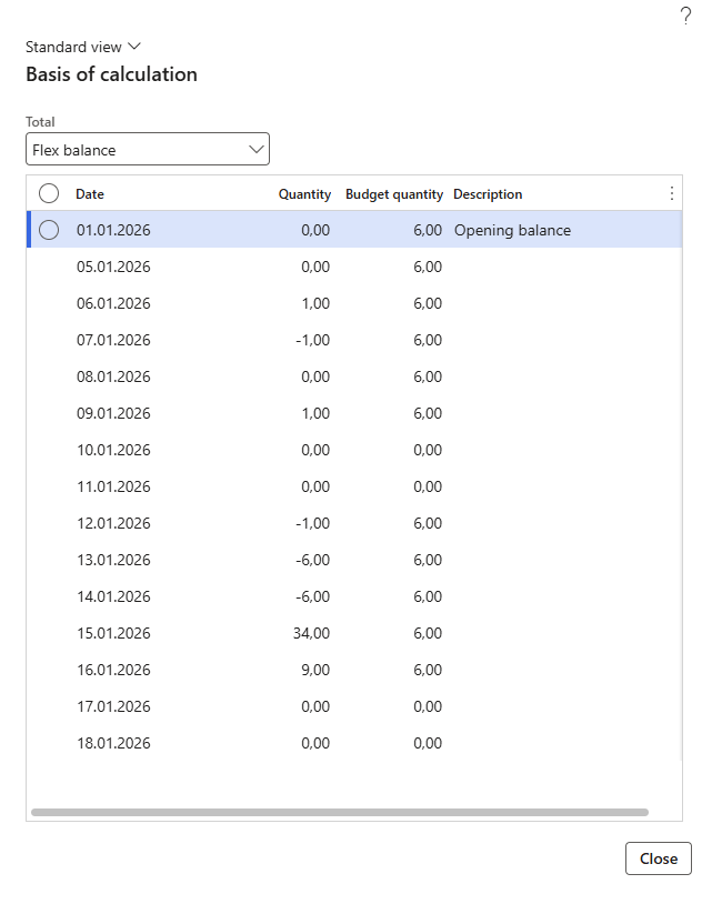 From date | Calculation period start. Last posted opening balance for Hour balance is used If no date is selected. |