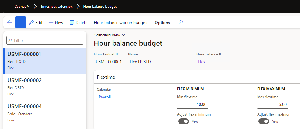 On a Flex budget is it no possible to set max- and min values for flextime.