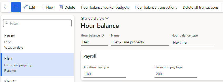 On all flextime hour balances is possible to setup Addition and Deduction pay types