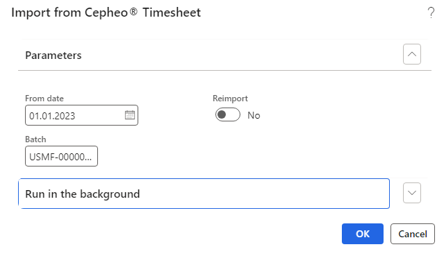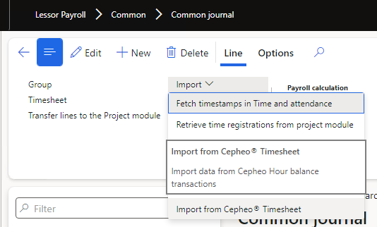 In the form (Common journal) Lines click on the Import button and select "Import form Cepheo Timesheet" to import data from hour balance.