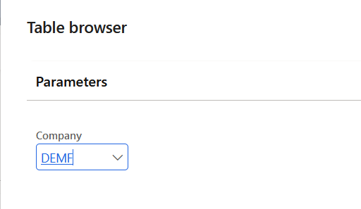 Table browser will be opened to show content of specific table in a given company (based on the users selection).