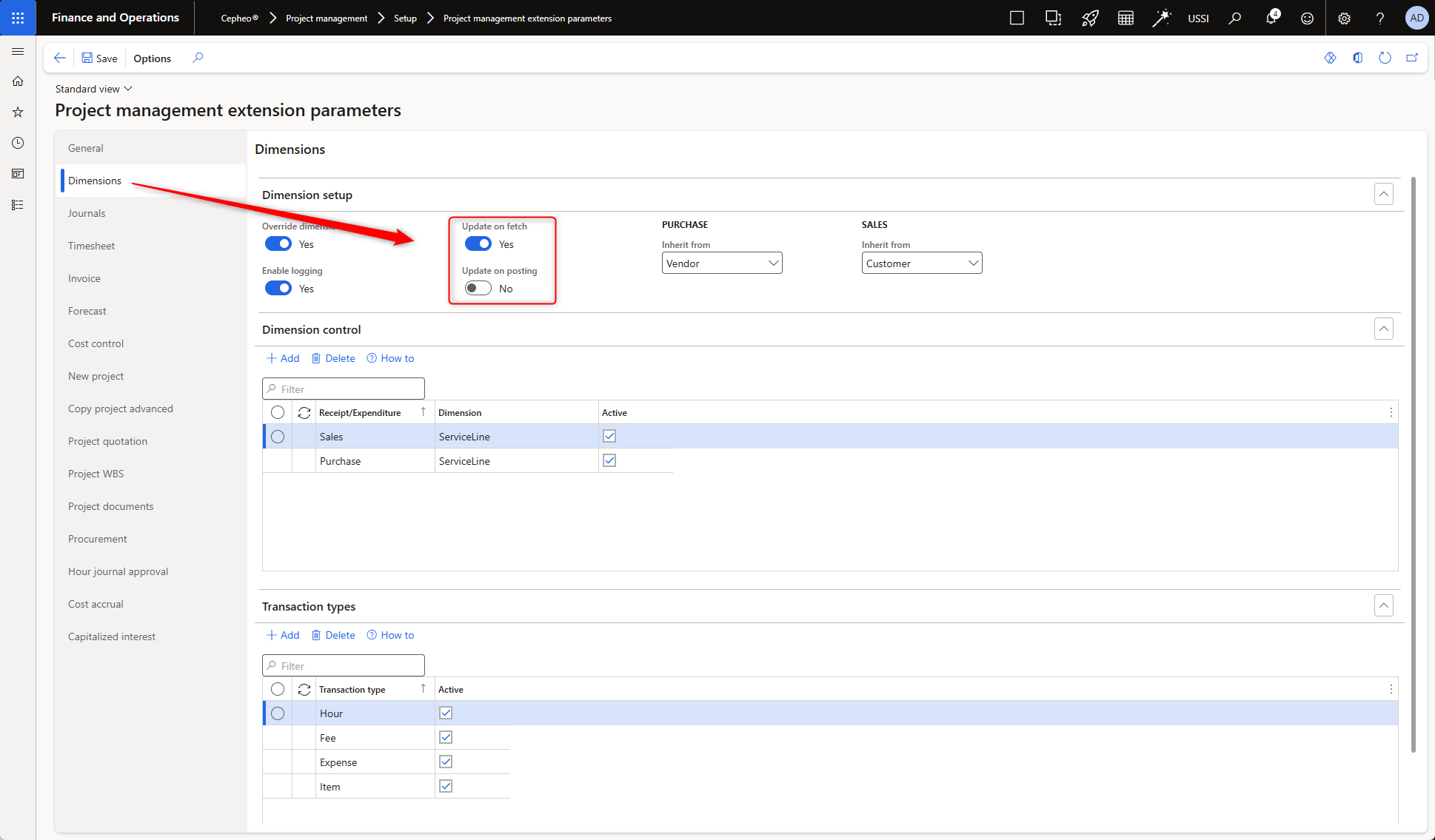 In the vendor invoice approval form we have now introduced parameters to set the default dimension on the project so that it can be triggered when fetching and/or when posting. This will be in addition to the change that already triggers when changes are done directly in the form.