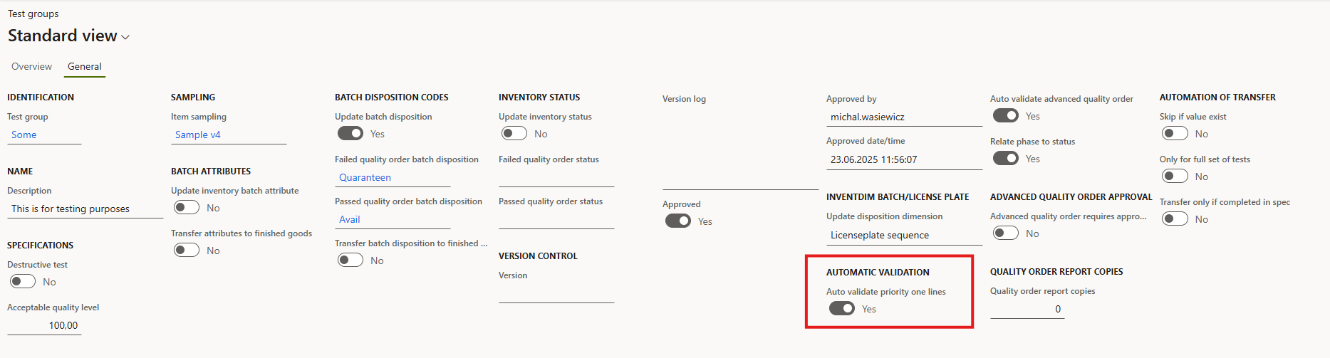 - In this event, the Advanced quality order phase will immediately transition to Completed out of spec. The system will not wait for the remaining Priority 1 tests to have results registered before making this phase update.