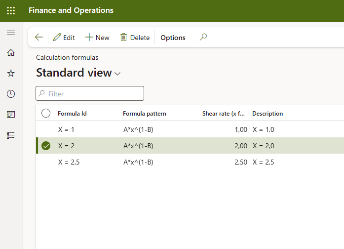 Users can configure only the Shear rate parameter; it means that only x factor can be defined. The formula structure itself cannot be changed in this version.