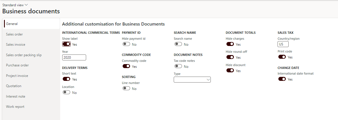 Show label allows you to turn on or off the 'Incoterms' label which is added to the delivery terms label, together with the year display the contract you follow.