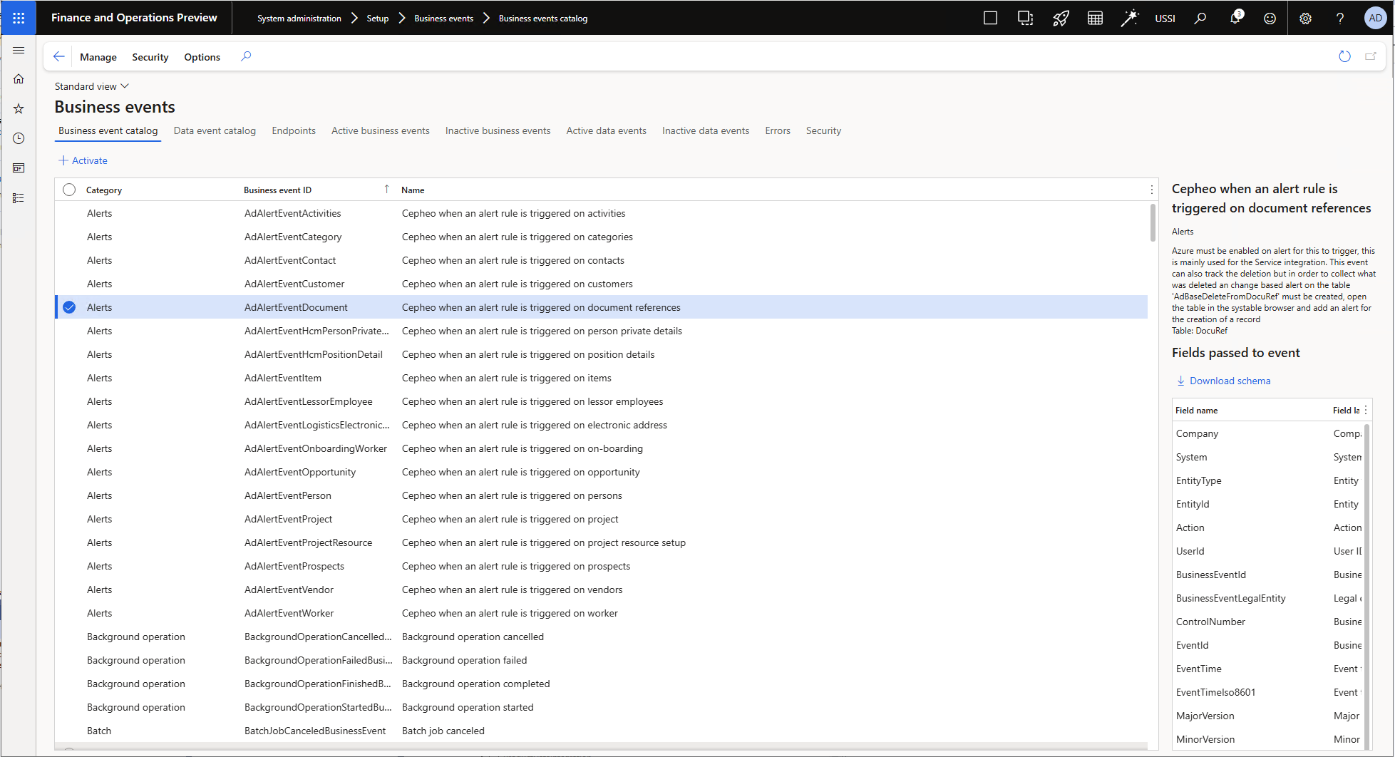 New alert event added for table Document References (DocuRef), this can be used in power automate to catch when an attachment is added or deleted for a table.