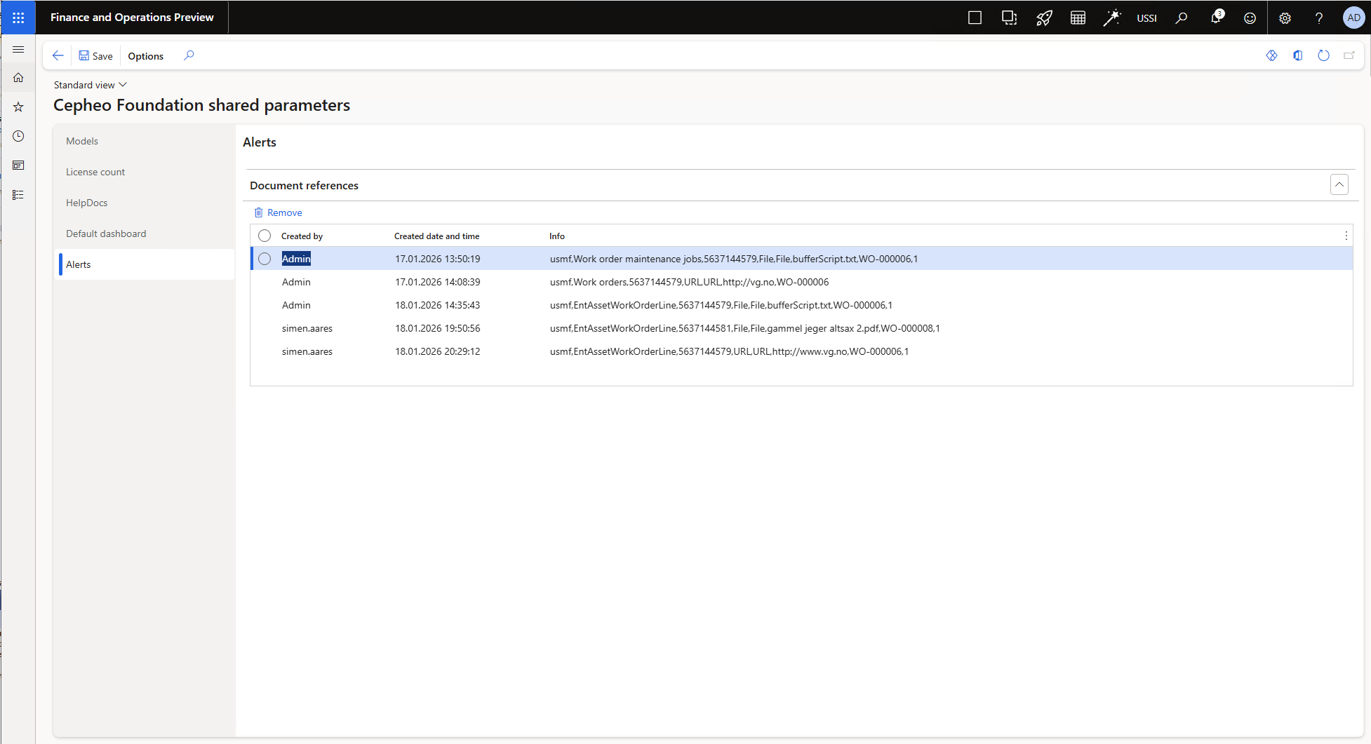 If delete actions is used, the deleted records can be viewed in the Foundation shared parameters, under the new tab Alerts