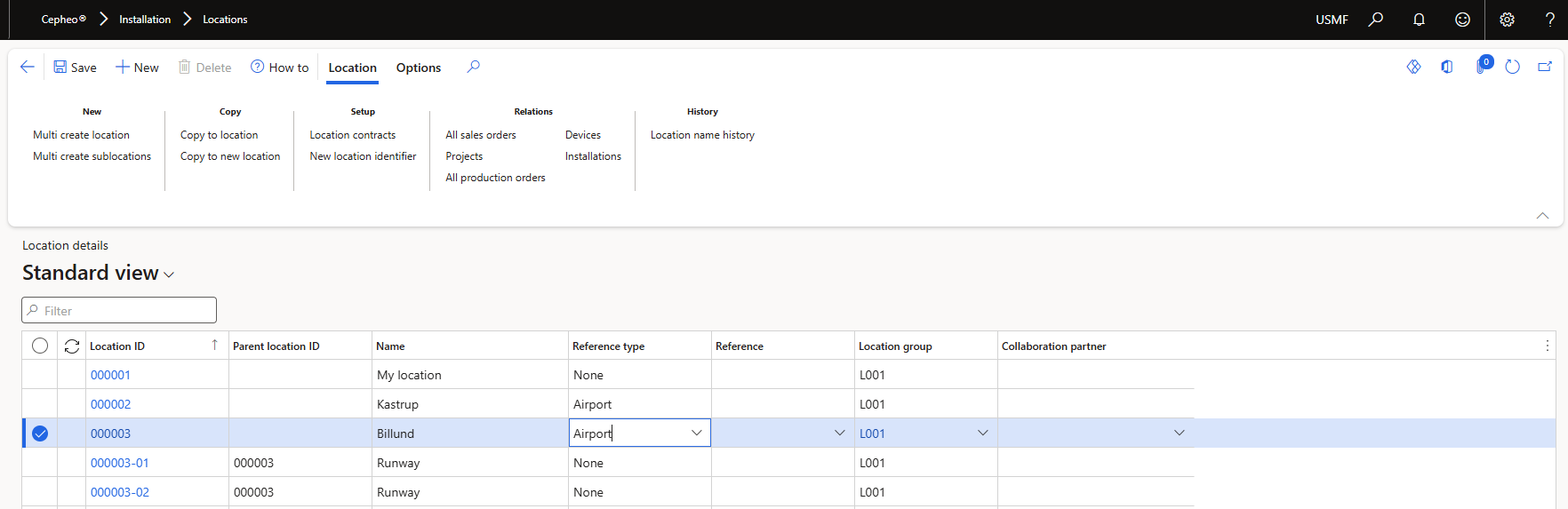 To create new Locations, go to: Cepheo® > Installation > Locations