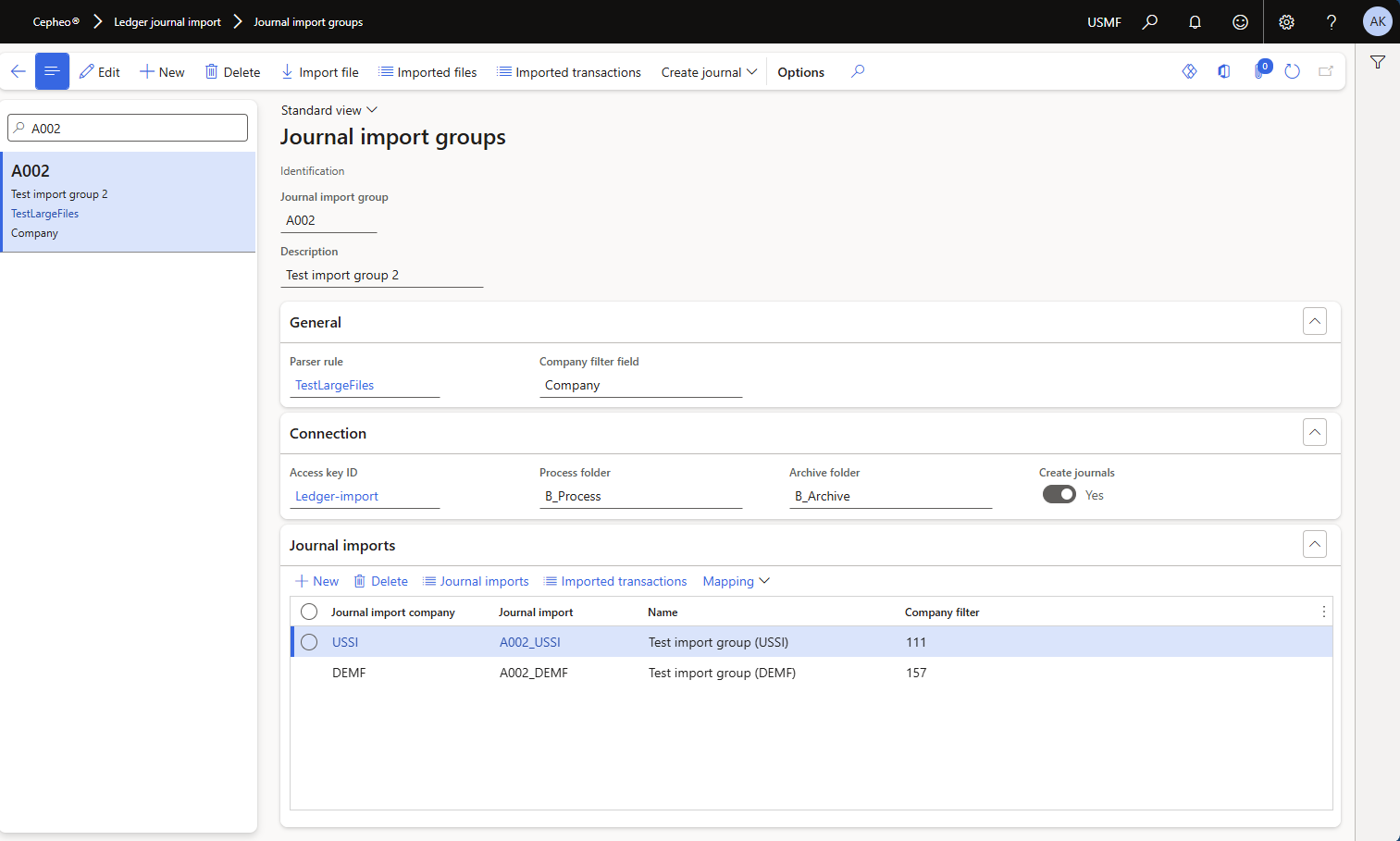 The Journal import groups is used to manage import groups for multi-company journal imports. It allows users to define, configure, and maintain import groups that control how ledger data files are processed and imported across different companies.