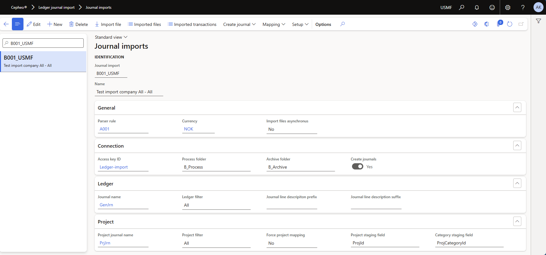 Import to journals | Create project and/or ledger journals after import of files from Azure. |