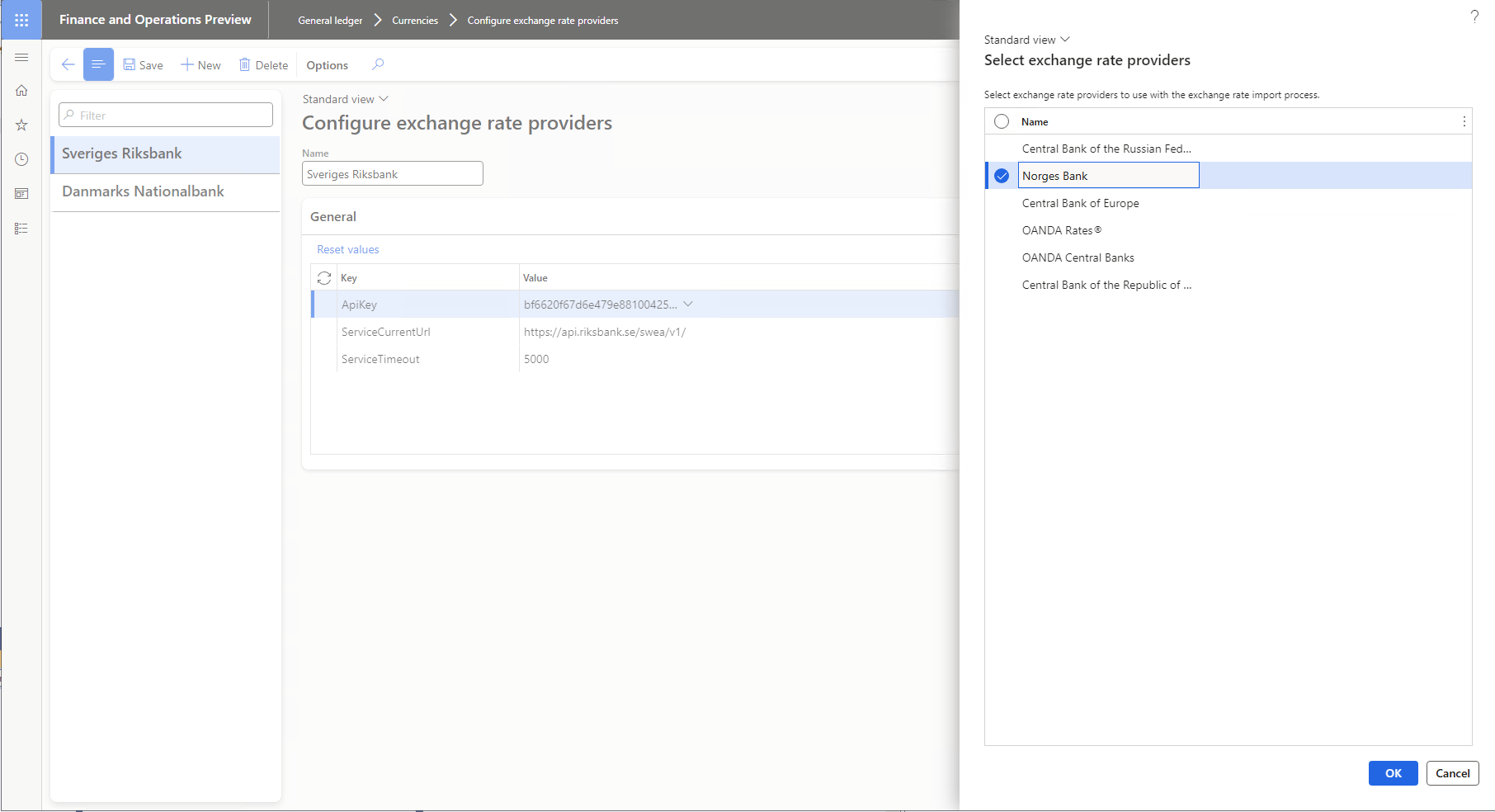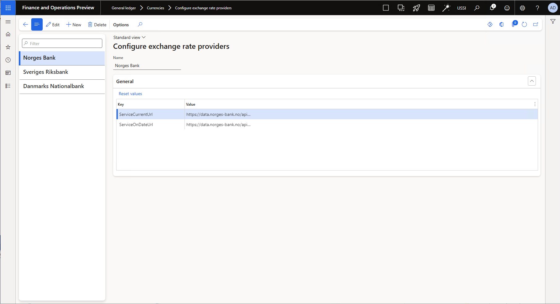 In order to use Norges Bank as an exchange rate provider we need to configure it. Go to Exchange rate providers form and click New,