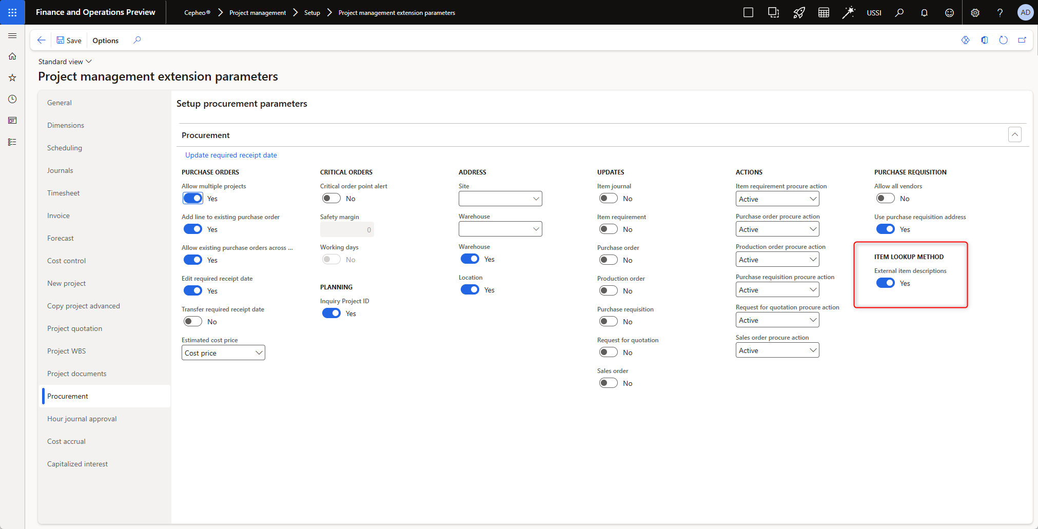 This ensures that posting follows the project’s specific setup when it differs from the general Project Management and Accounting configuration.