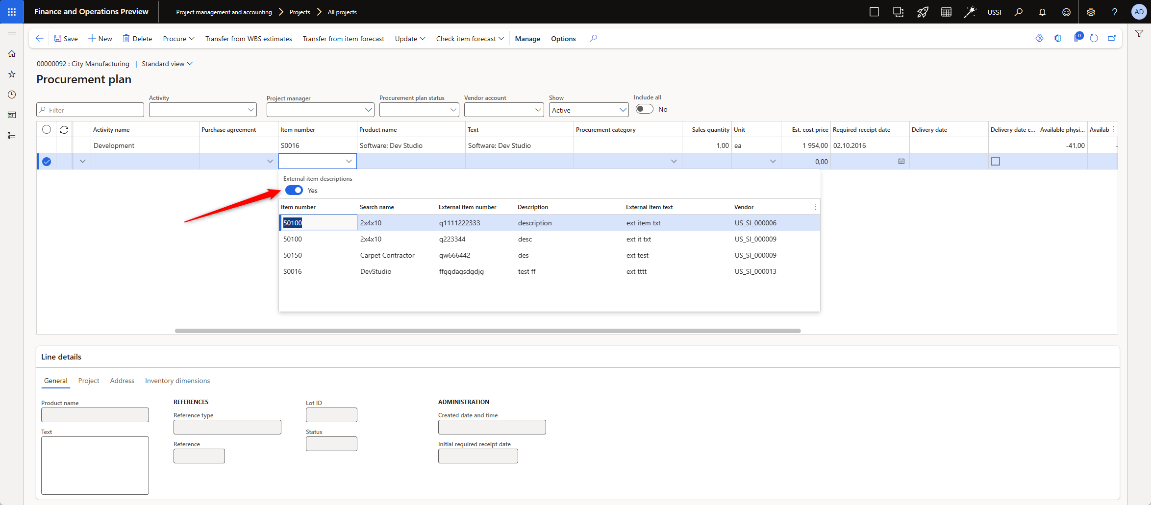 then on the procurement form on the item drop down a new option will be available