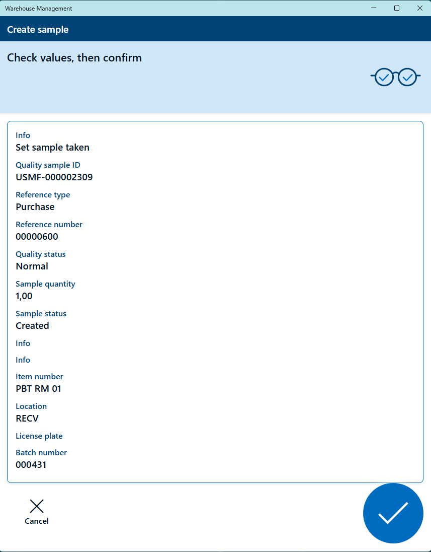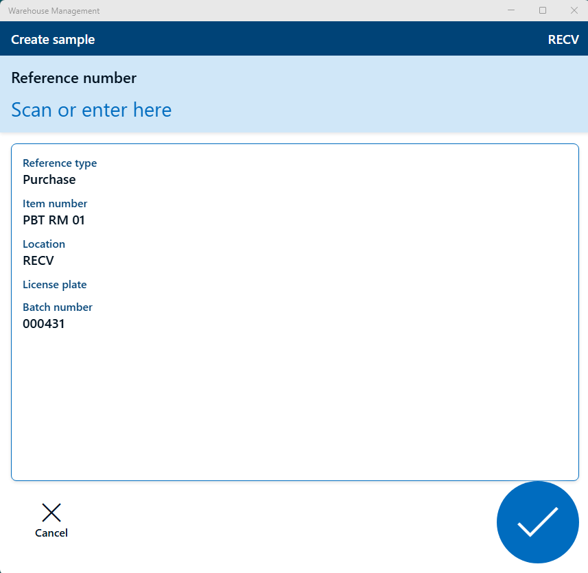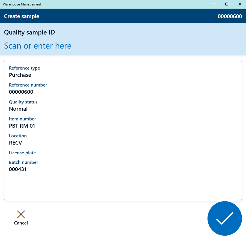 This feature is especially useful for warehouse workers who encounter a product issue during handling and want to create a sample for a specific batch to be tested or evaluated outside the standard processes that automatically generate samples.