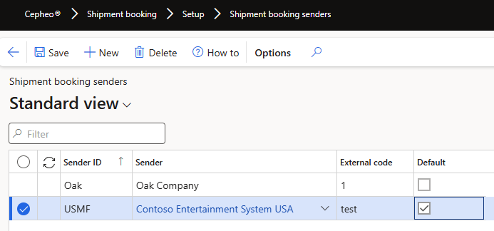 Cepheo > Shipment booking > Setup > Shipment booking senders
