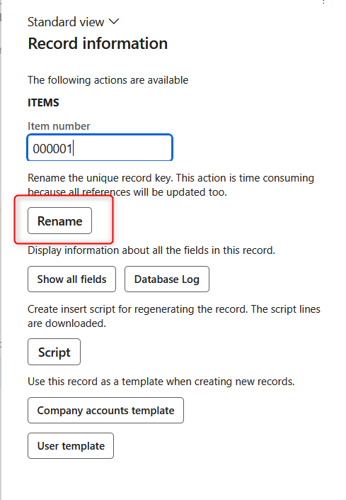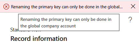 GDM also respects standard validations available in D365FO preventing renaming records (like existing references etc.). GDM makes sure the rename process goes through in either all or none companies, depending on the validation outcome. If rename is not allowed in at least one company, the whole operation will be canceled. In such case, record name will remain in its previous state.