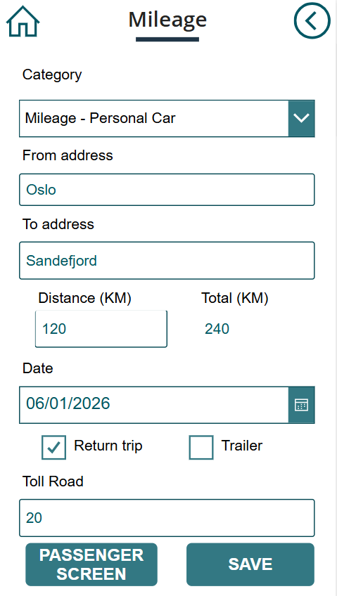 - Supports Scandinavian requirements with the following expense types: